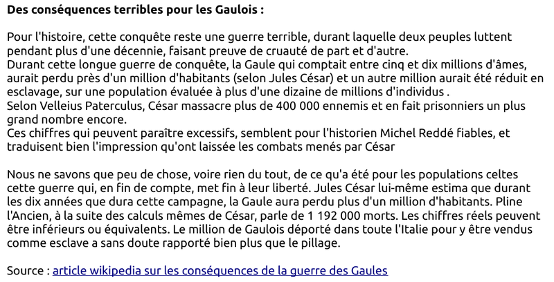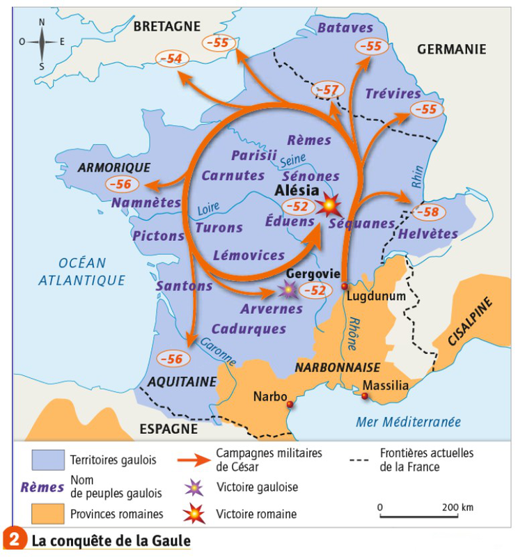 1. La bataille d'Alésia et la défaite des Gaulois en 52 av. JC face à l'armée de César : vidéo1 et vidéo2 (Une vidéo extraite de l'émission E=MC6)